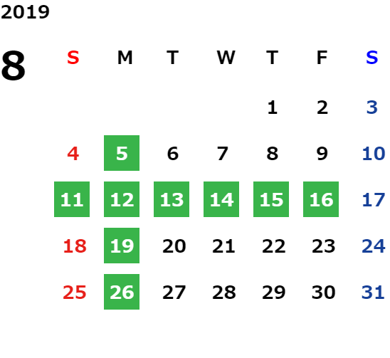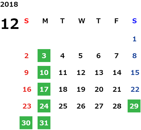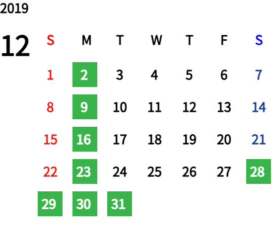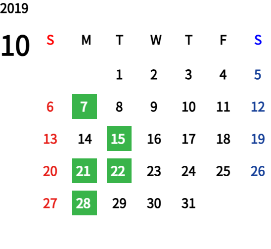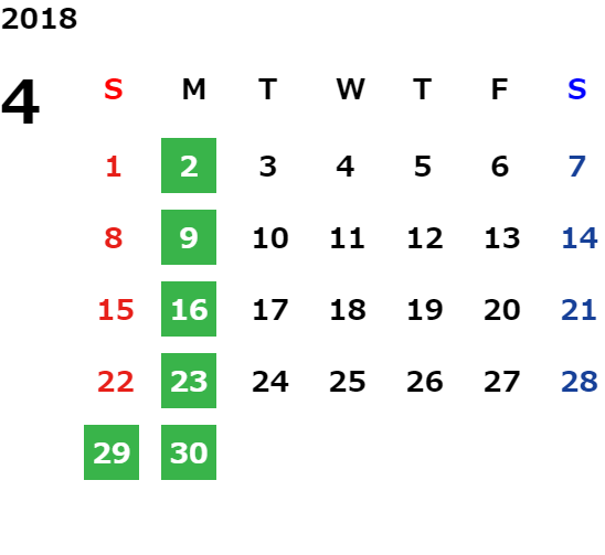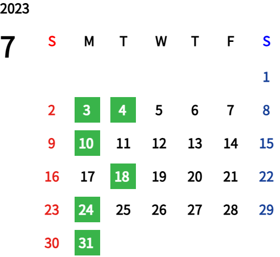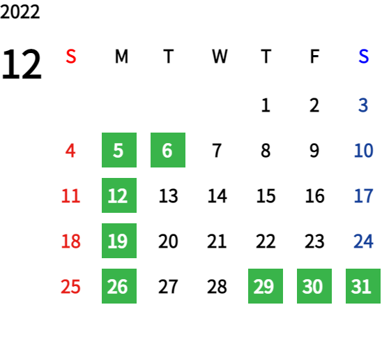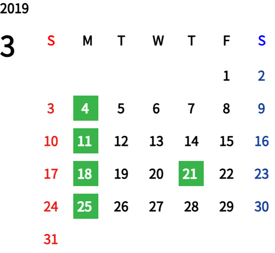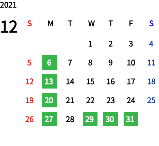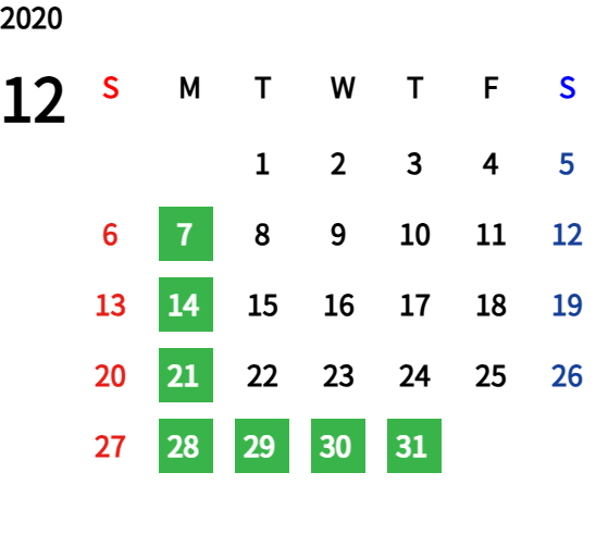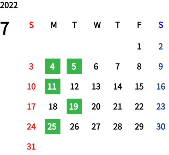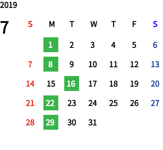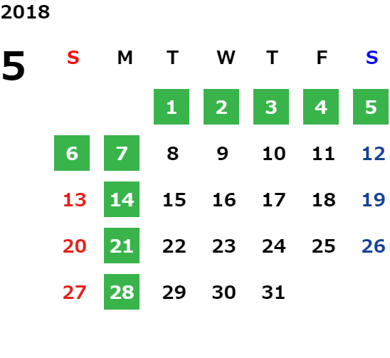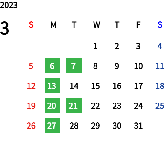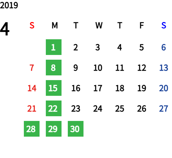 ハッピーマンデーは全て休業となり、あわせて第一、第二、第三火曜日も定休日となります。詳しくはこちらをご覧ください。