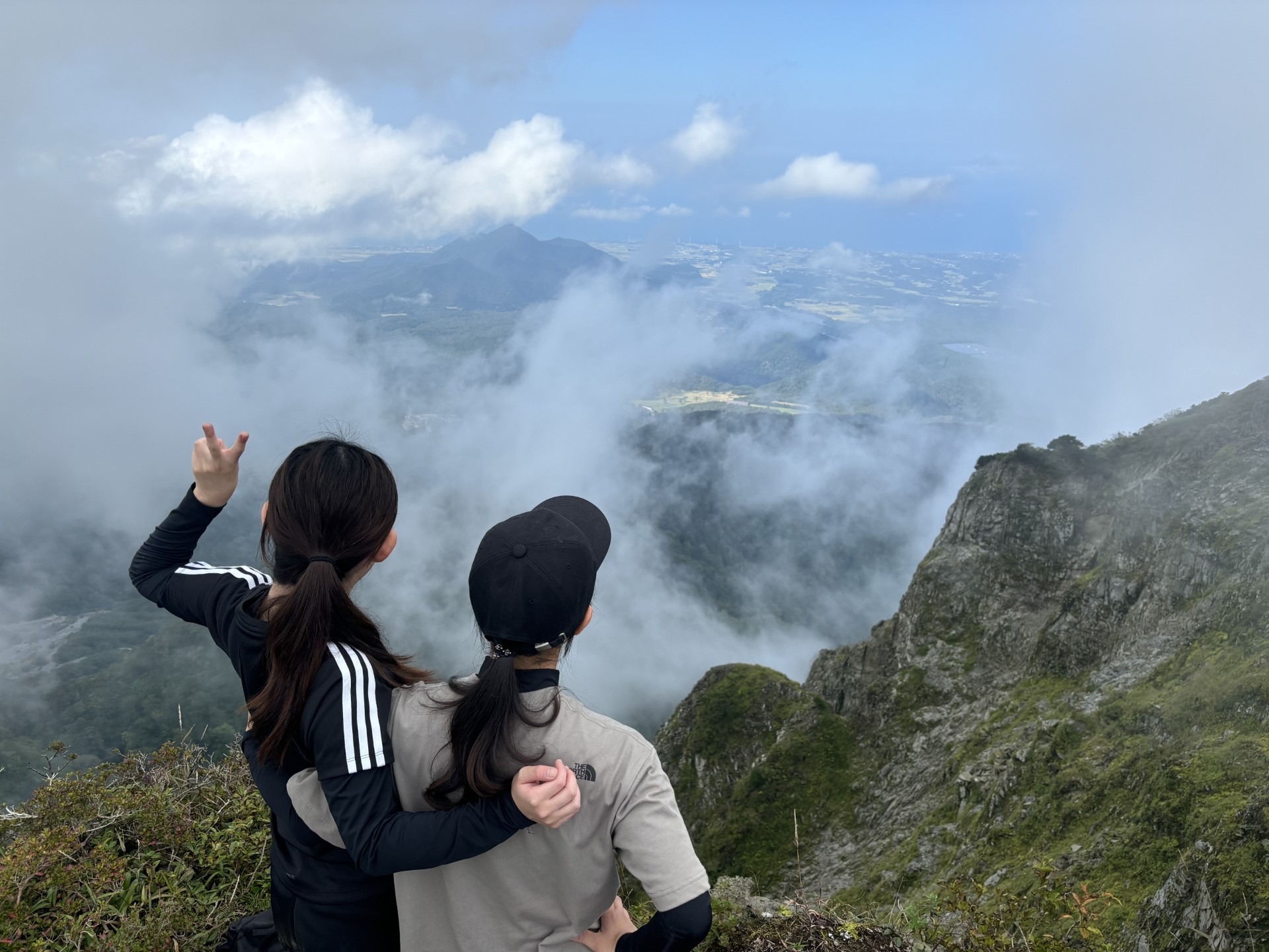 登っている間、辺り一面真っ白だったのに、山頂に着くと雲の隙間から米子市が見渡せて最高でした!!