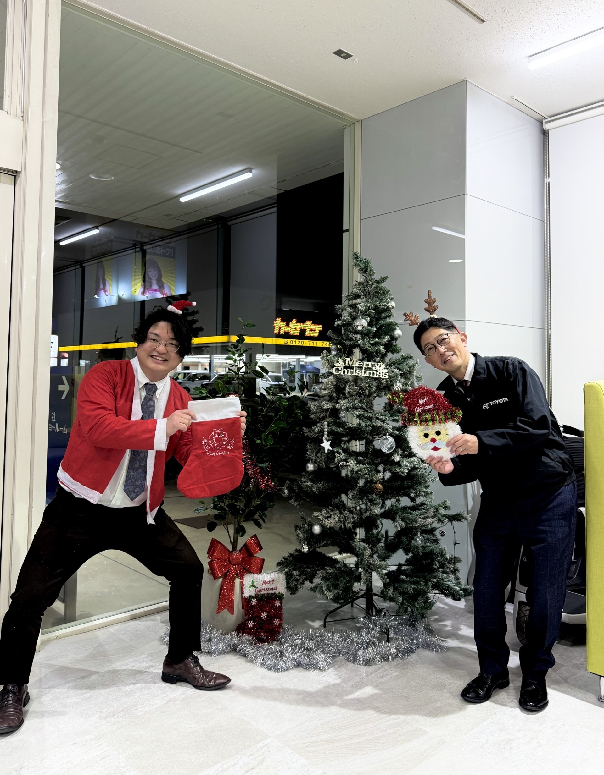 サンタさん(宮田スタッフ)とトナカイさん(店長の河端)と記念撮影🌟