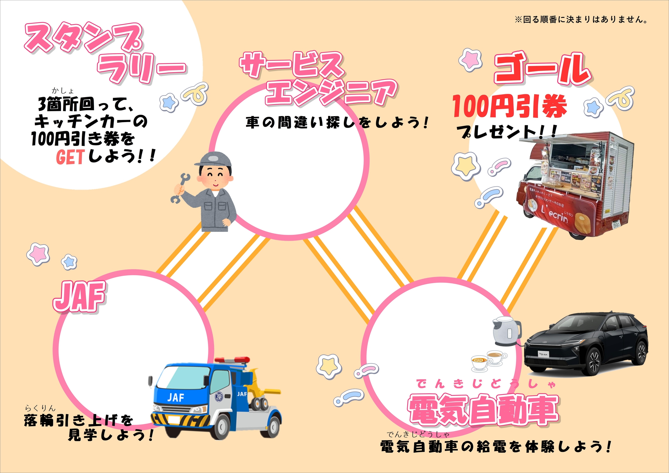 また、L'ecrinさんのキッチンカーにお越しいただいたり、JAFさんにもお越しいただく予定にしており、